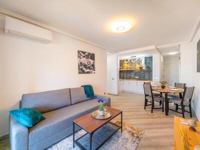 We present this renovated apartment in Torrevieja. Located in the Parque de las Naciones residential complex with unobstructed views. It is located just 10 minutes from the beach.